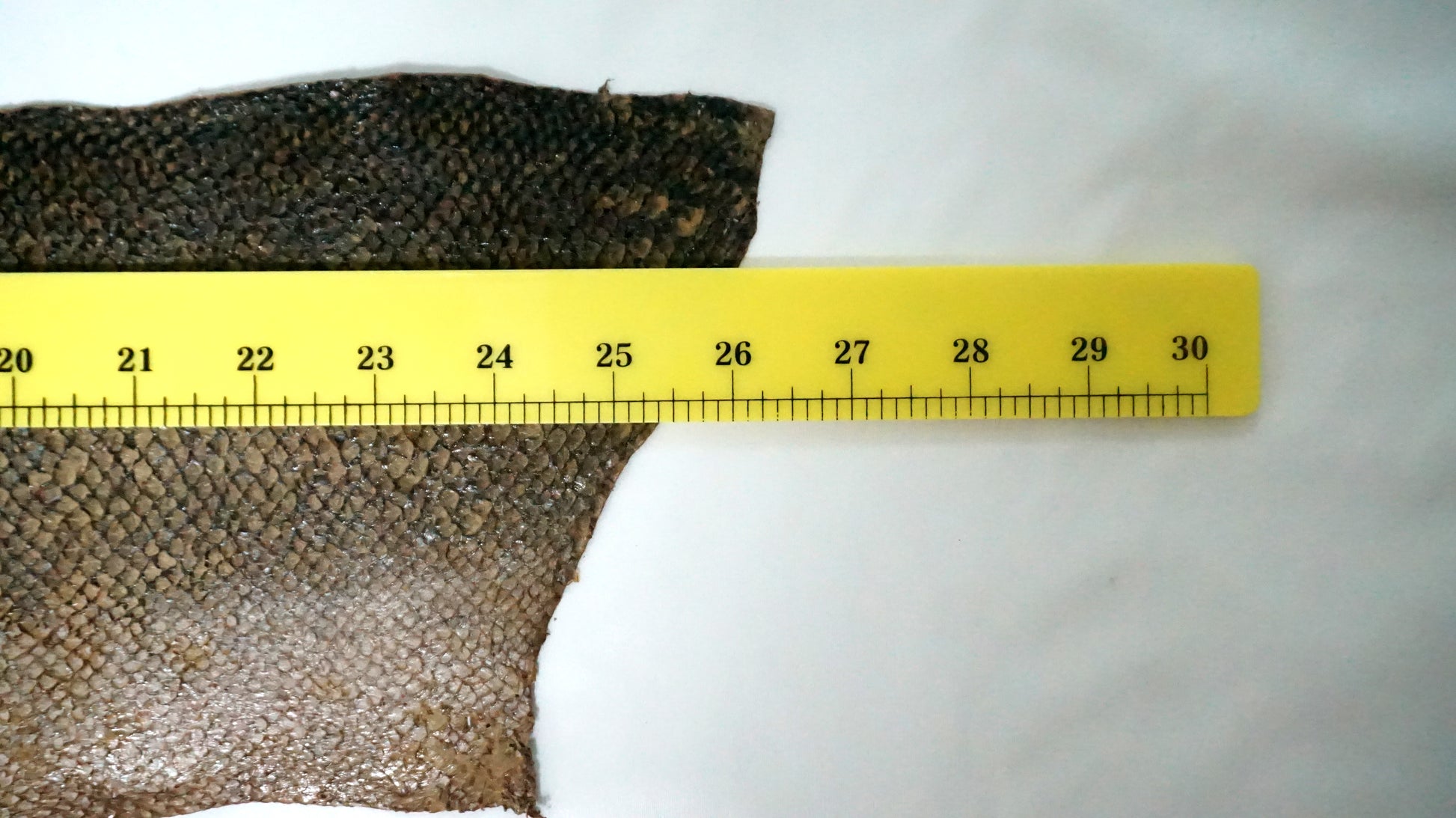 Taeeun Han, Glossy Coating Camel Brown Salmon Leather, 2024. Chinese Sumac Gallnut tanning for 5 days, 26 and 3/8 inches. South Korea